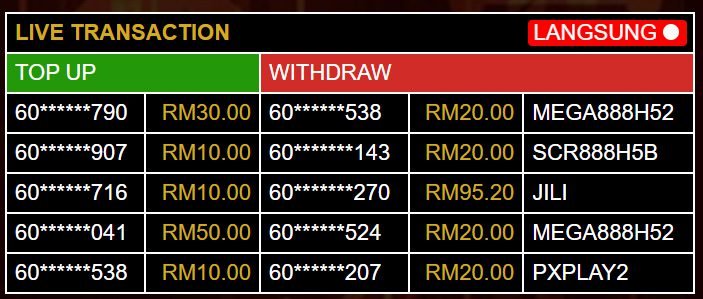 Minimum deposit: biasanya bermula dari RM10–RM30 (ikut promo semasa)